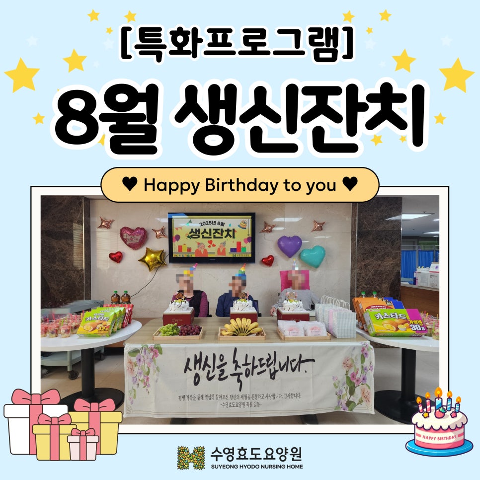 지난 금요일에는 8월에 생신인 어르신들을 대상으로 "생신잔치"를 진행했습니다.