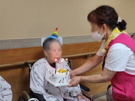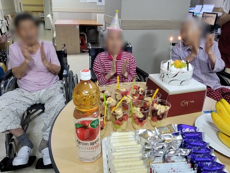 이번 달에는 각 층에서 생신잔치를 진행했습니다.