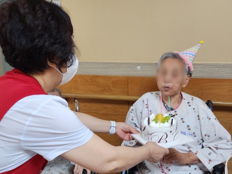"어르신, 후~ 하고 불어서 촛불 꺼주세요"